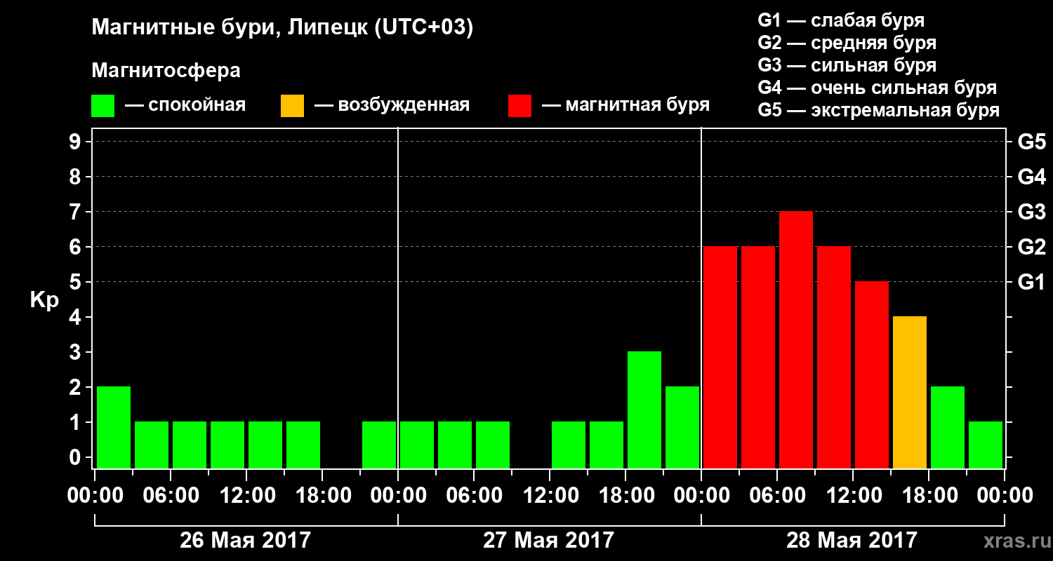 Магнитные бури в Липецке 28 мая 2017 года