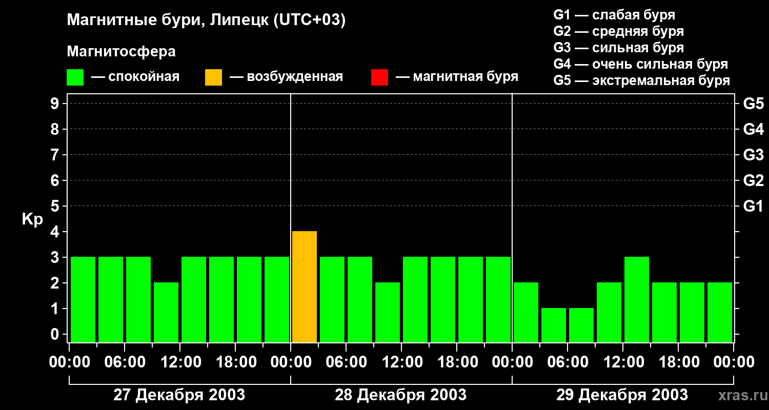 Магнитные бури в Липецке — 29 декабря 2003 года