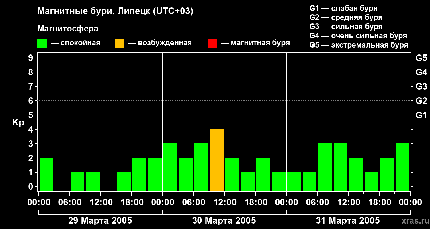 Магнитные бури в Липецке — 31 марта 2005 года