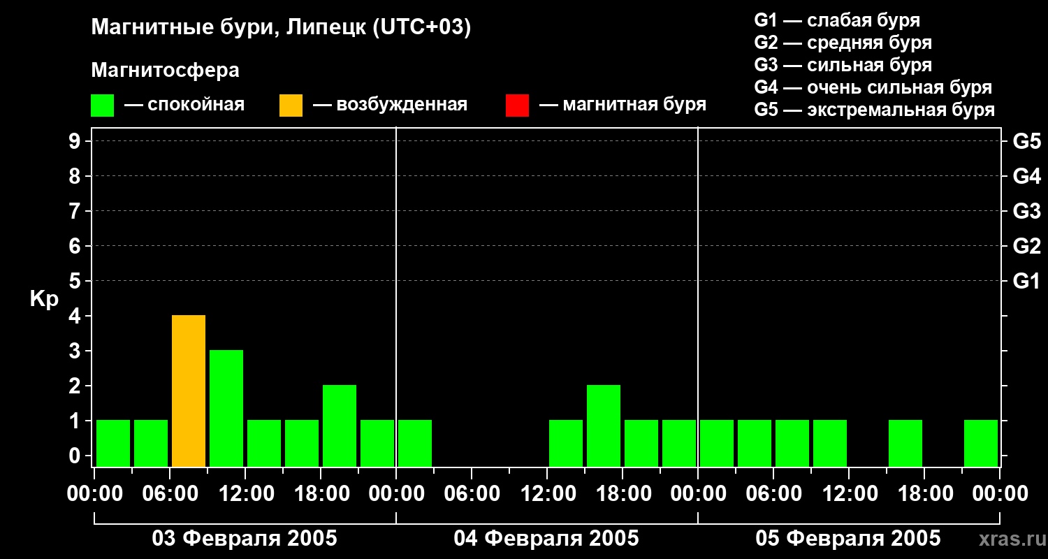 Магнитные бури в Липецке — 5 февраля 2005 года