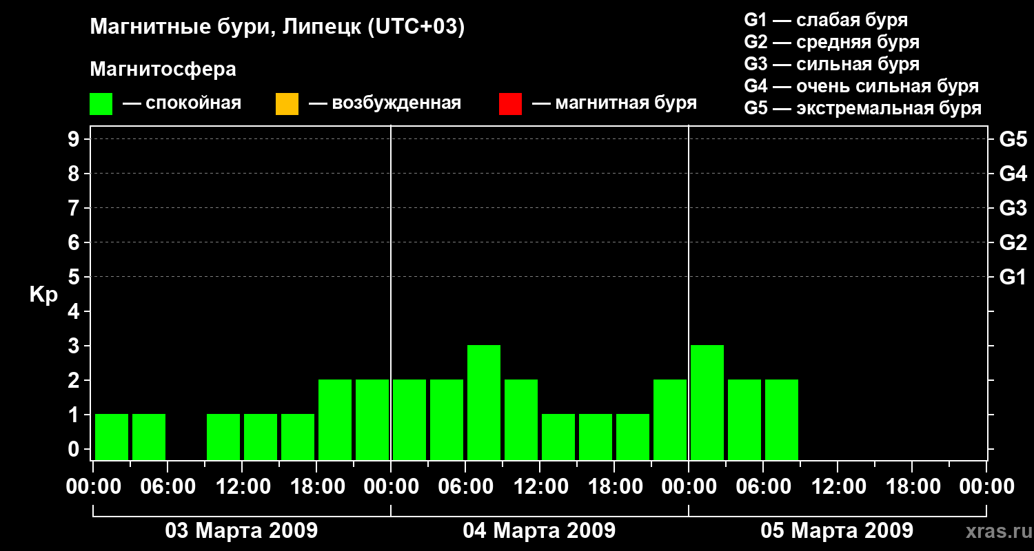Магнитные бури в Липецке в марте 2009 года