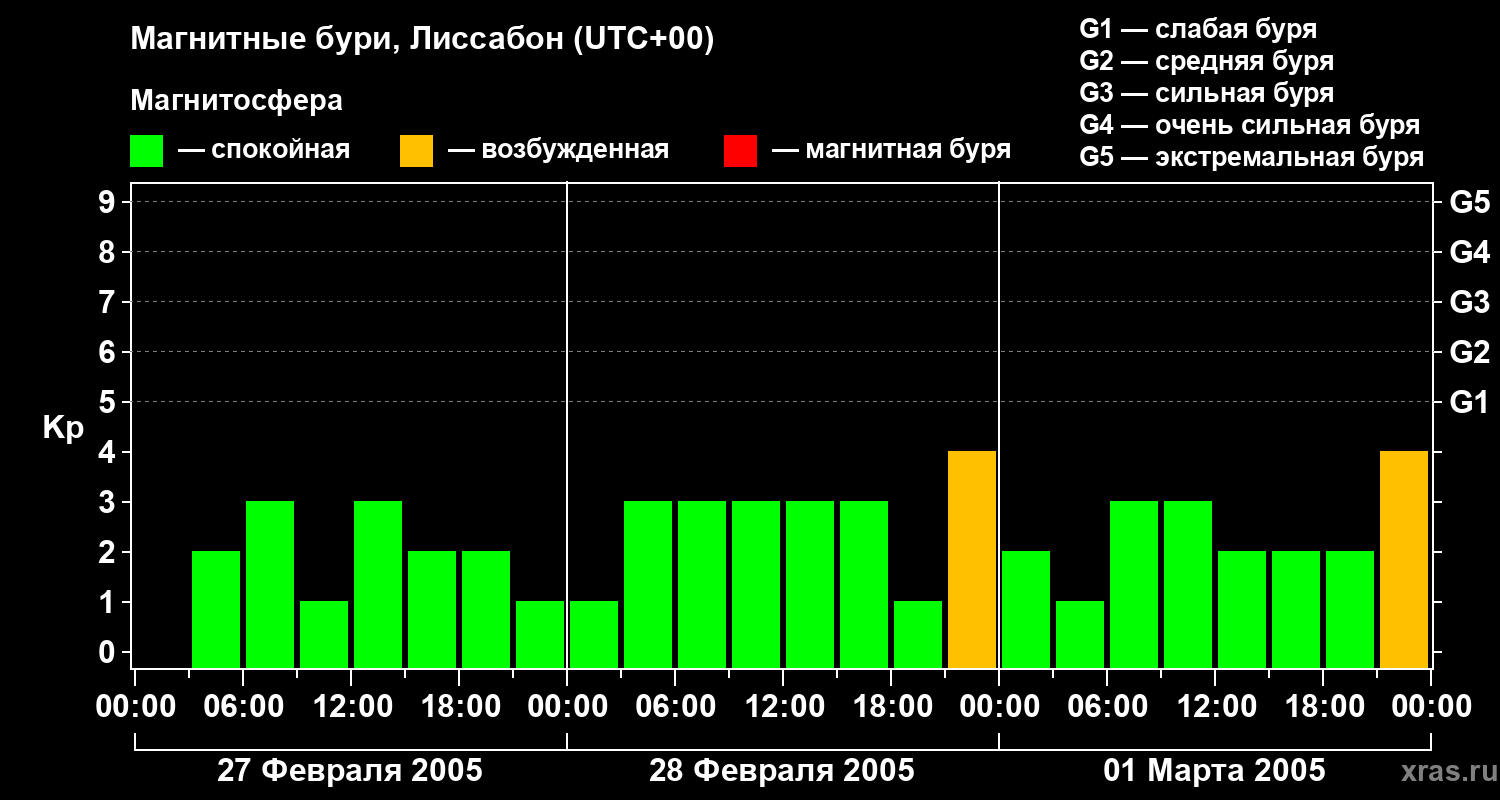 Магнитные бури в Лиссабоне — 1 марта 2005 года