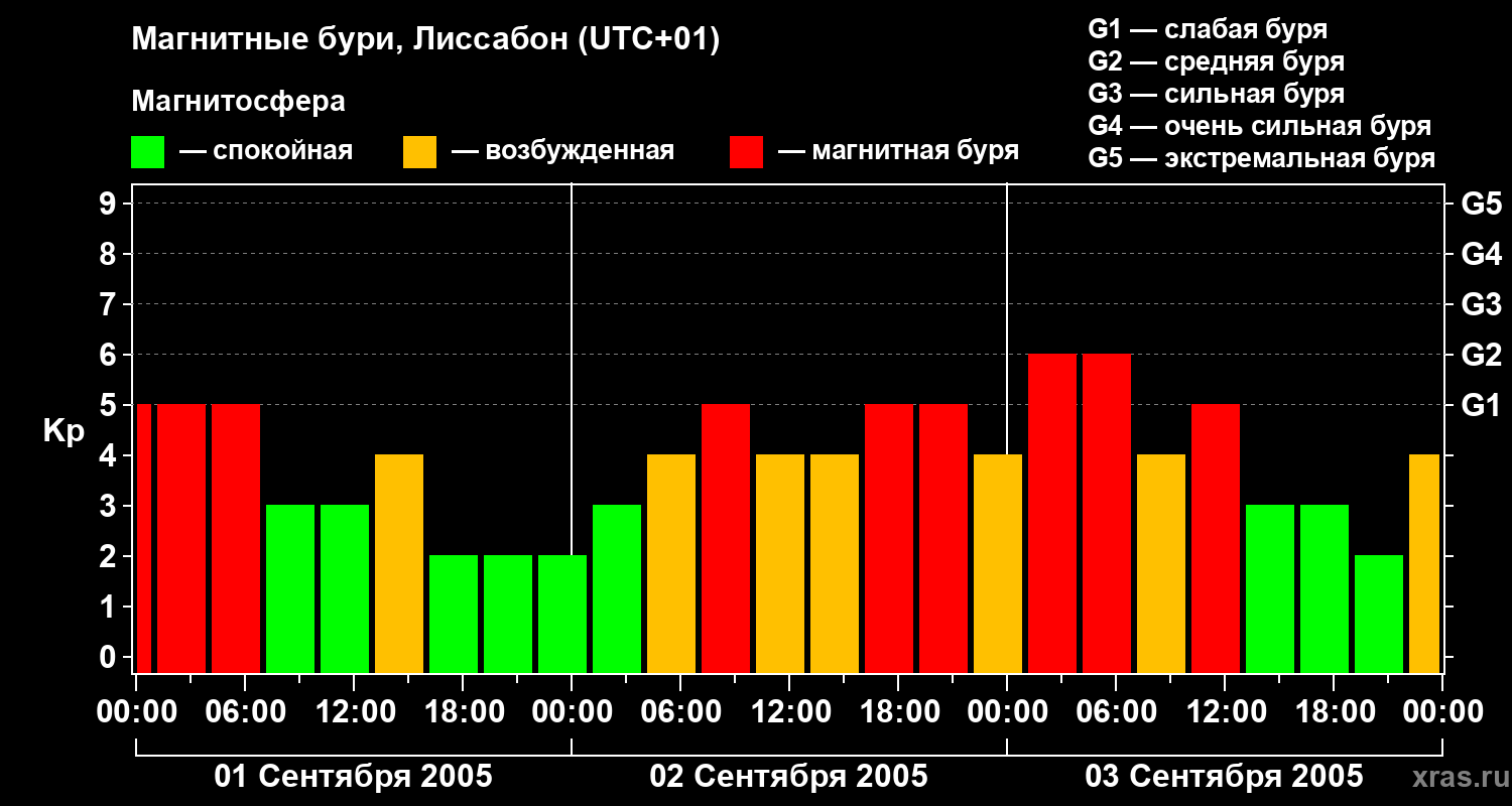 Магнитные бури в Лиссабоне — 3 сентября 2005 года