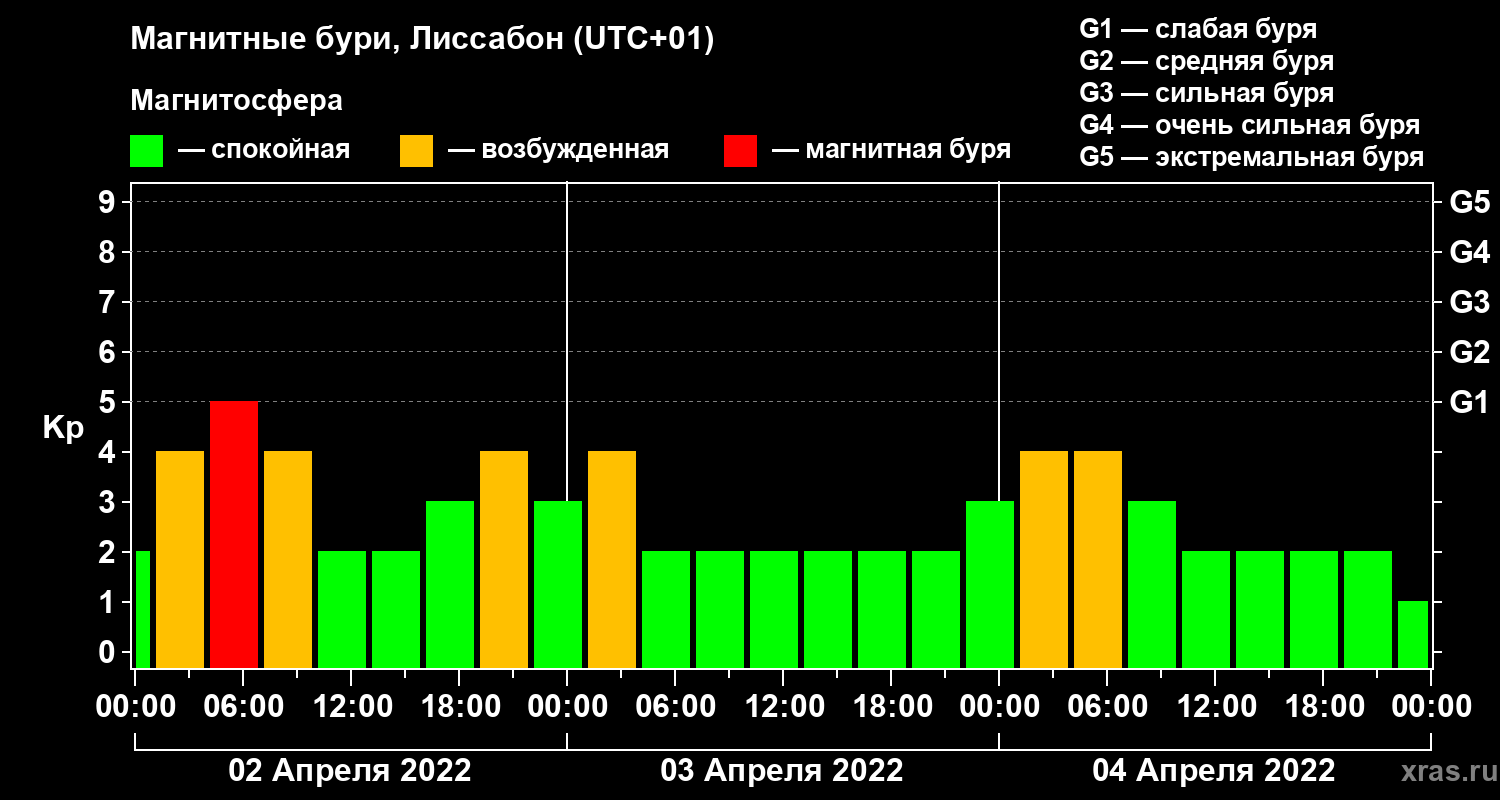 Магнитные бури в Лиссабоне — 4 апреля 2022 года