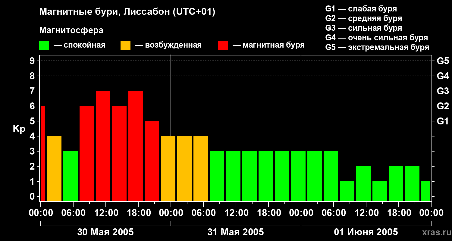 Магнитные бури в Лиссабоне — 1 июня 2005 года