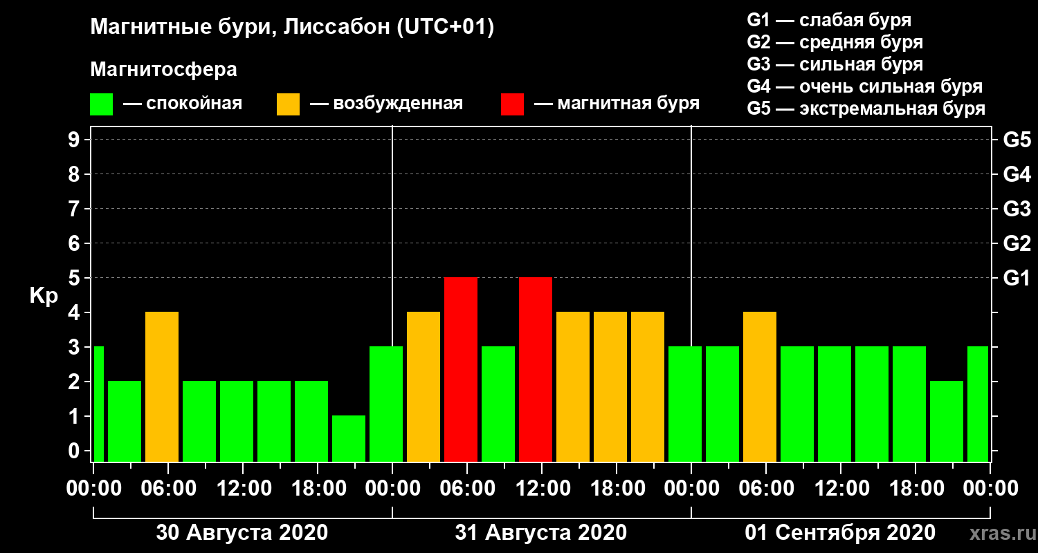 Магнитные бури в Лиссабоне — 1 сентября 2020 года
