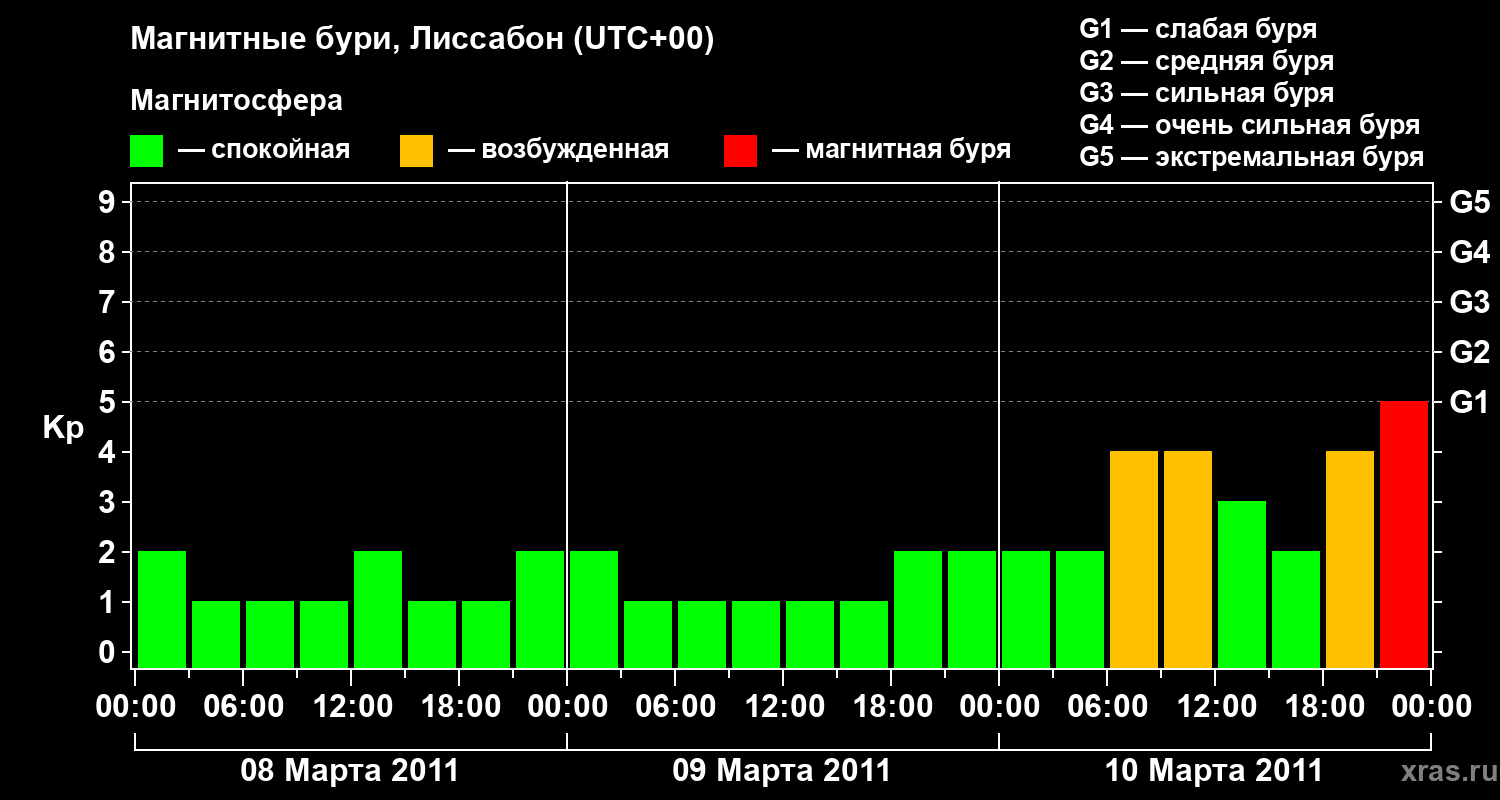 Магнитные бури в Лиссабоне — 10 марта 2011 года