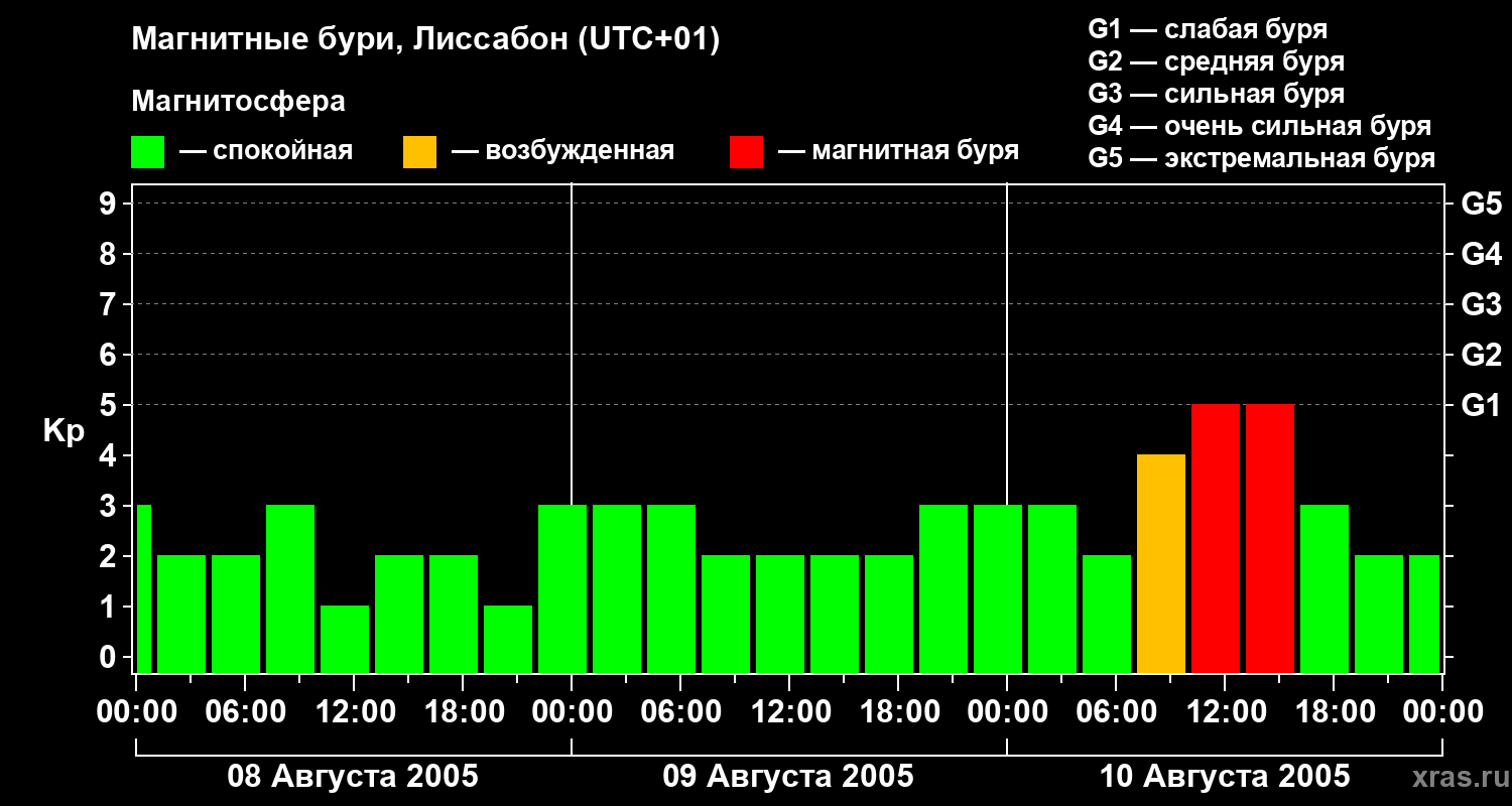 Магнитные бури в Лиссабоне — 10 августа 2005 года