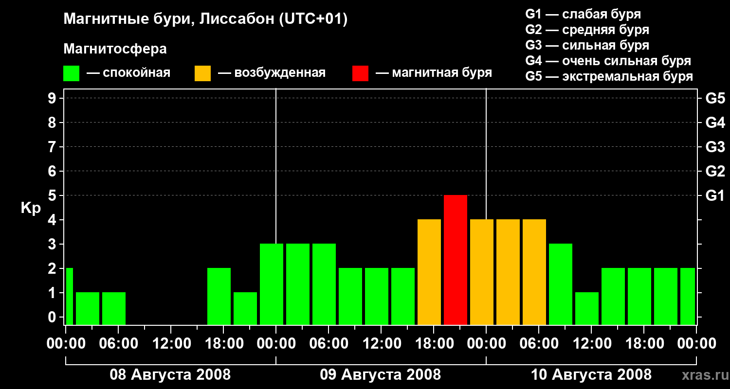 Магнитные бури в Лиссабоне — 10 августа 2008 года