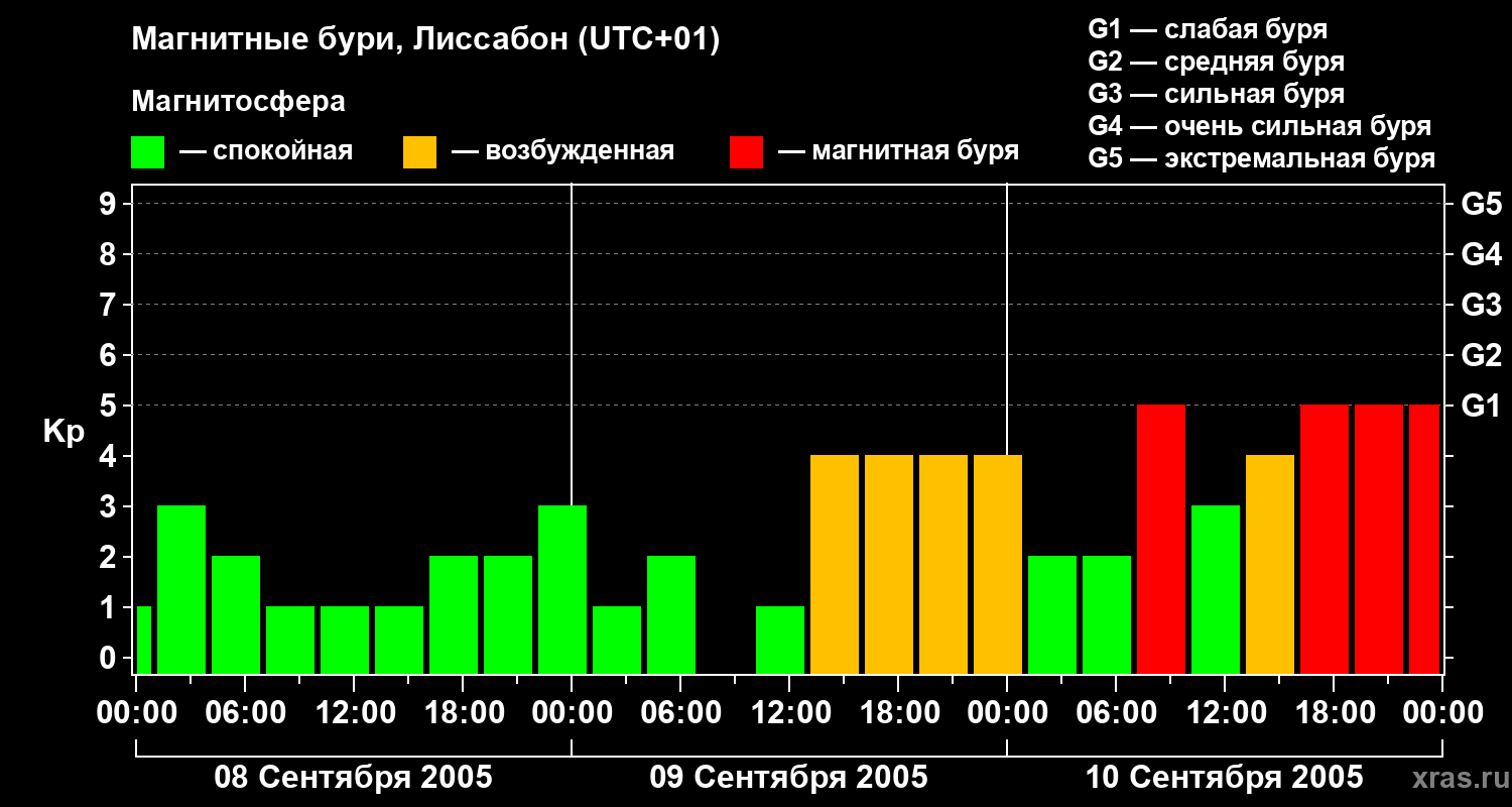 Магнитные бури в Лиссабоне — 10 сентября 2005 года