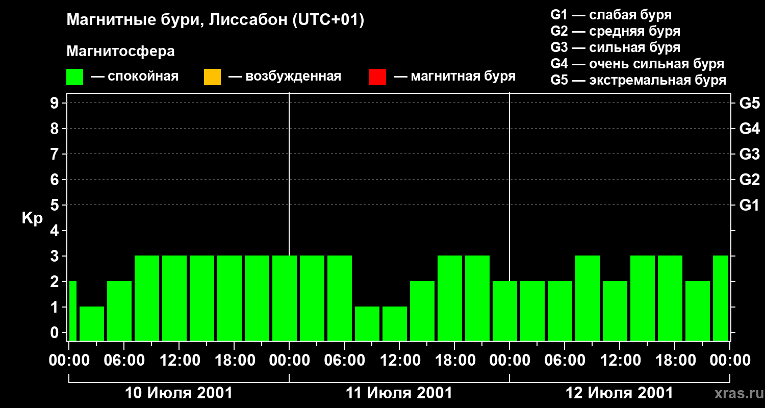 Магнитные бури в Лиссабоне 12 июля 2001 года