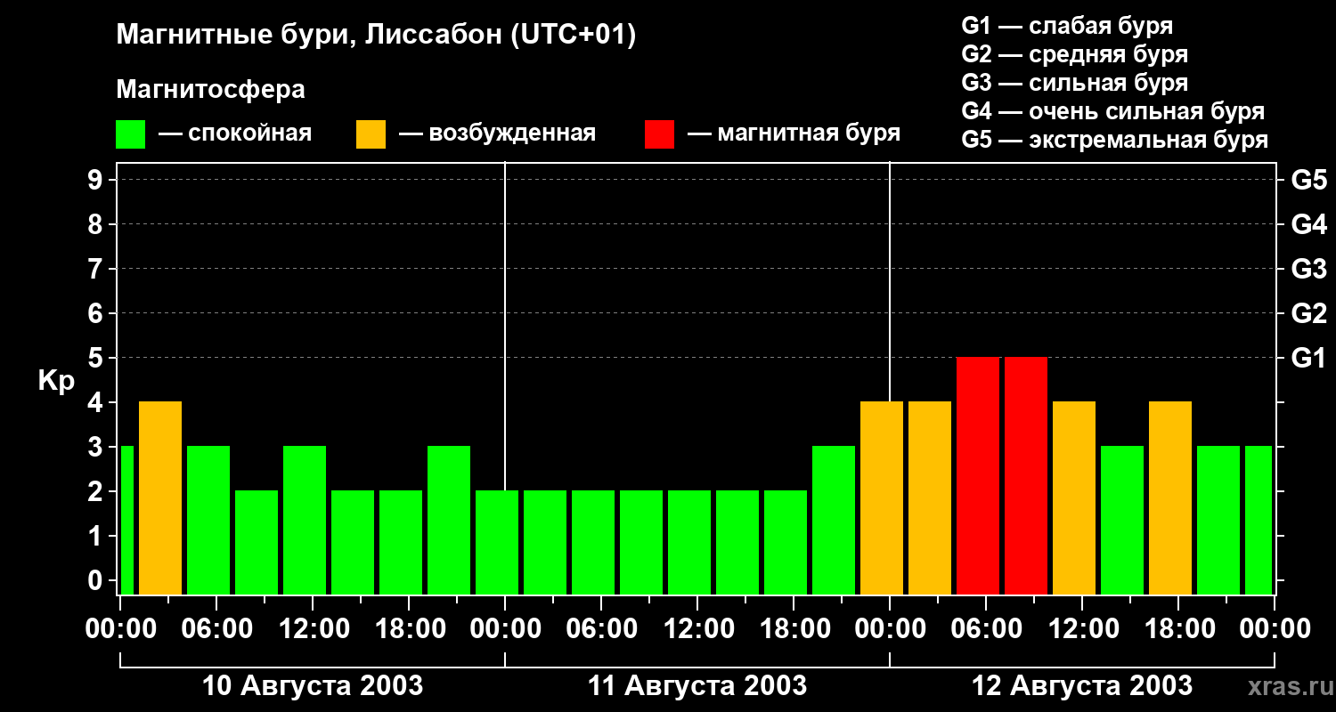 Магнитные бури в Лиссабоне — 12 августа 2003 года