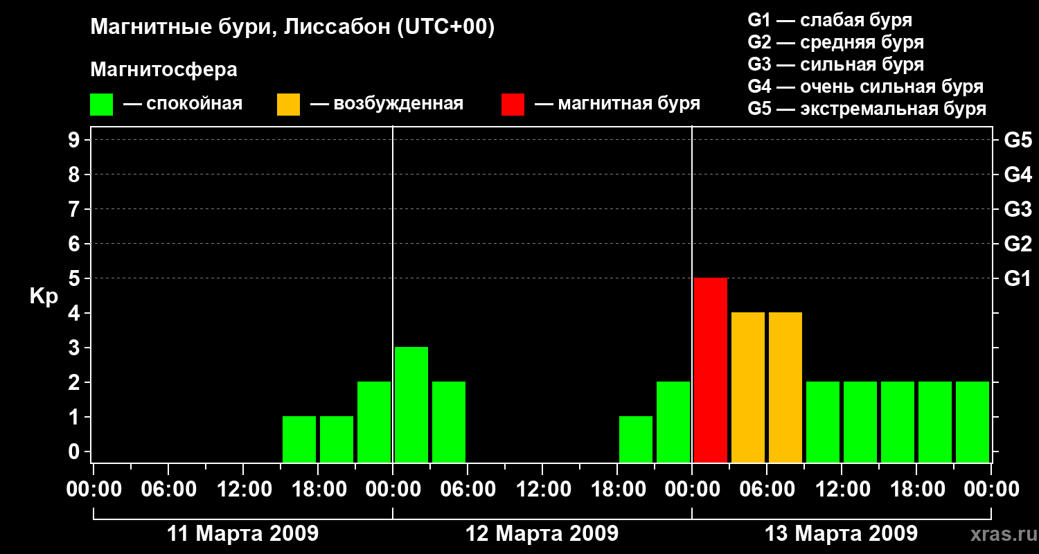 Магнитные бури в Лиссабоне — 13 марта 2009 года