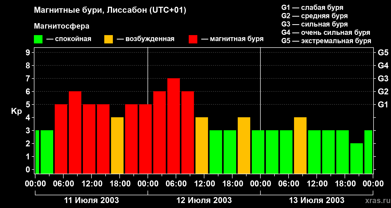 Магнитные бури в Лиссабоне — 13 июля 2003 года