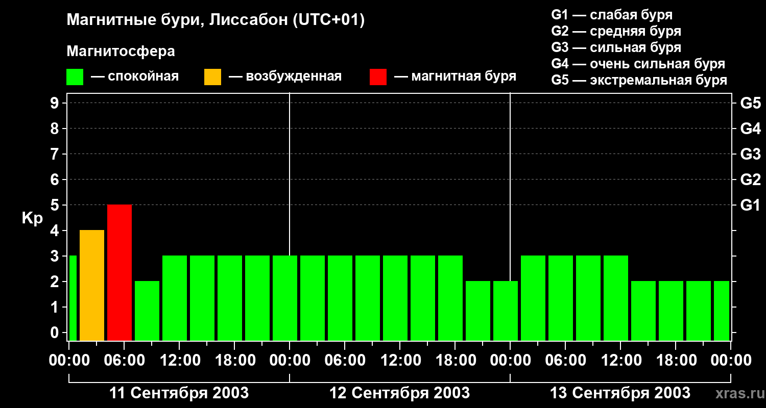 Магнитные бури в Лиссабоне — 13 сентября 2003 года