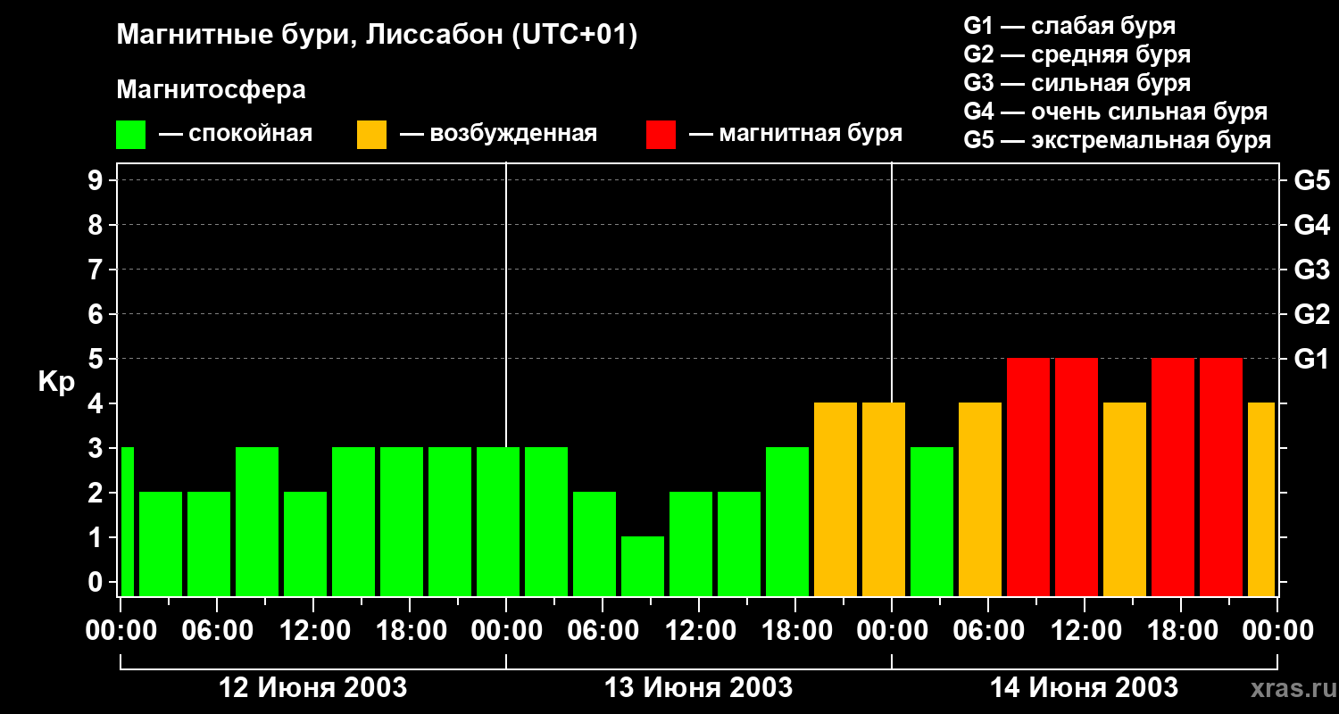Магнитные бури в Лиссабоне — 14 июня 2003 года