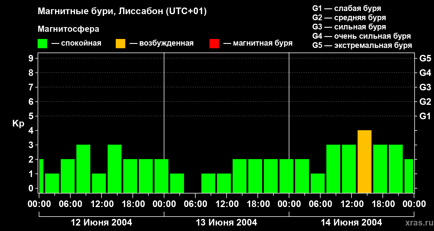 Магнитные бури в Лиссабоне — 14 июня 2004 года
