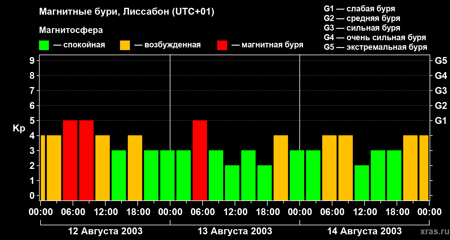 Магнитные бури в Лиссабоне — 14 августа 2003 года