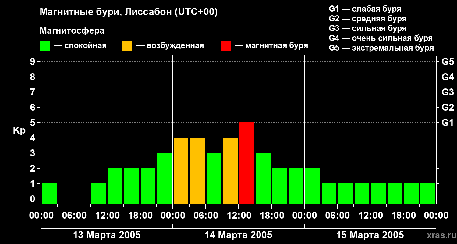 Магнитные бури в Лиссабоне — 15 марта 2005 года