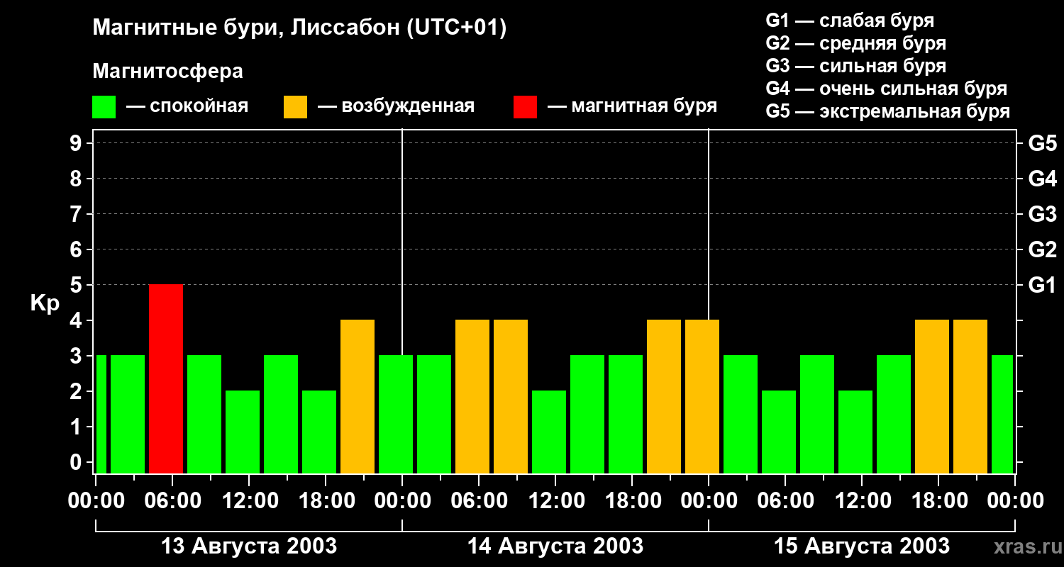 Магнитные бури в Лиссабоне — 15 августа 2003 года