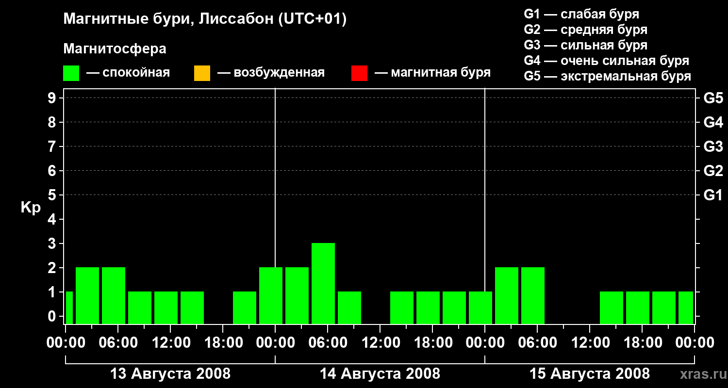 Магнитные бури в Лиссабоне — 15 августа 2008 года