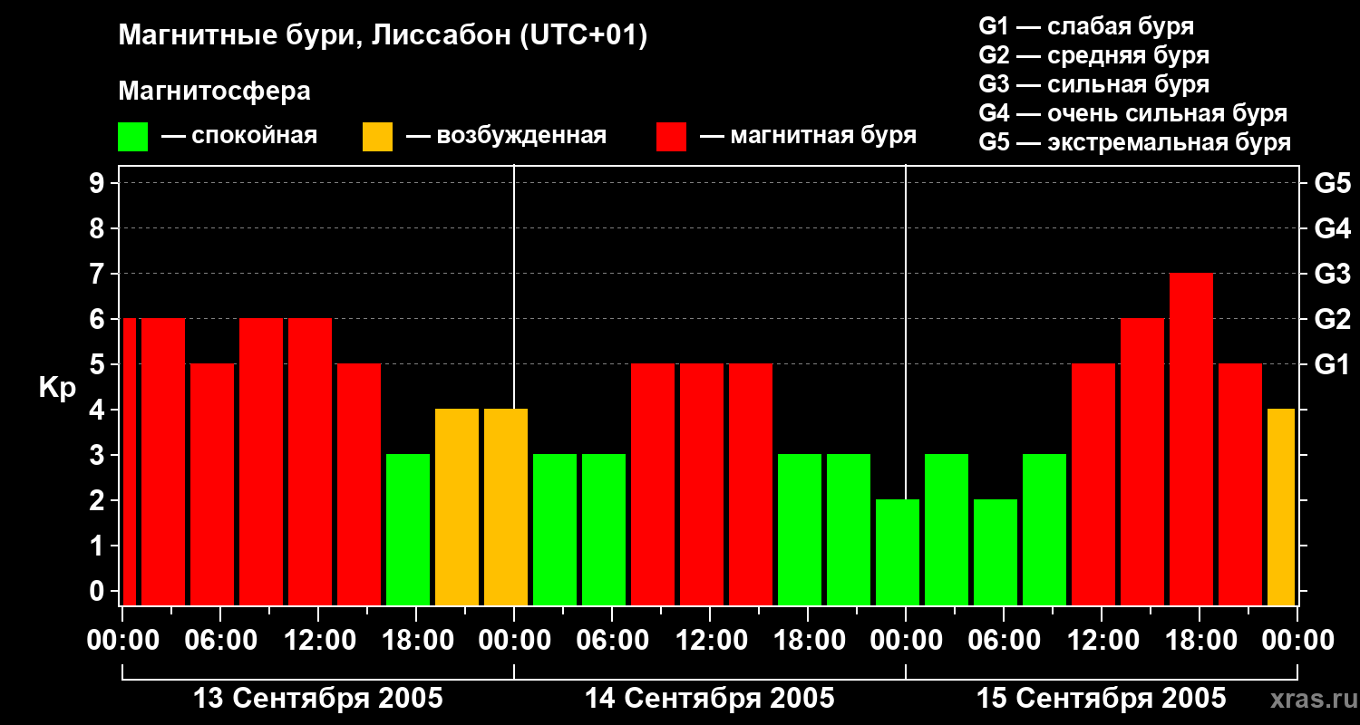 Магнитные бури в Лиссабоне — 15 сентября 2005 года