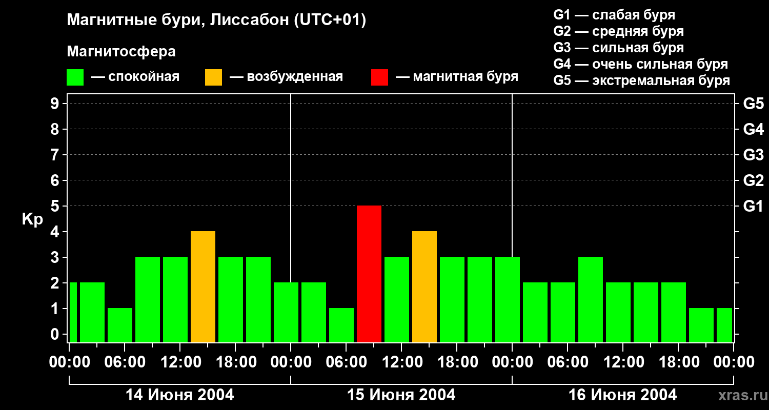 Магнитные бури в Лиссабоне — 16 июня 2004 года