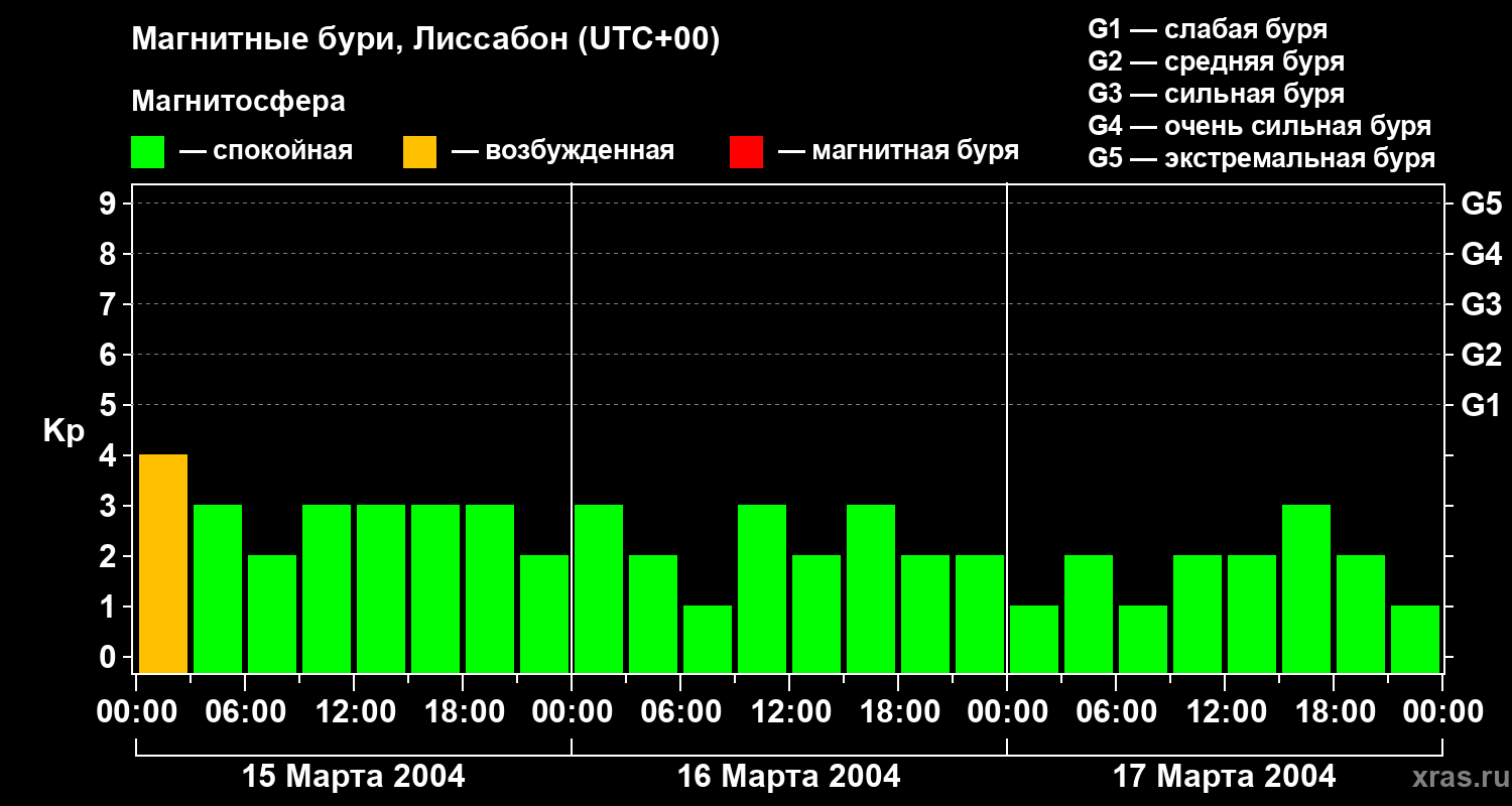 Магнитные бури в Лиссабоне — 17 марта 2004 года