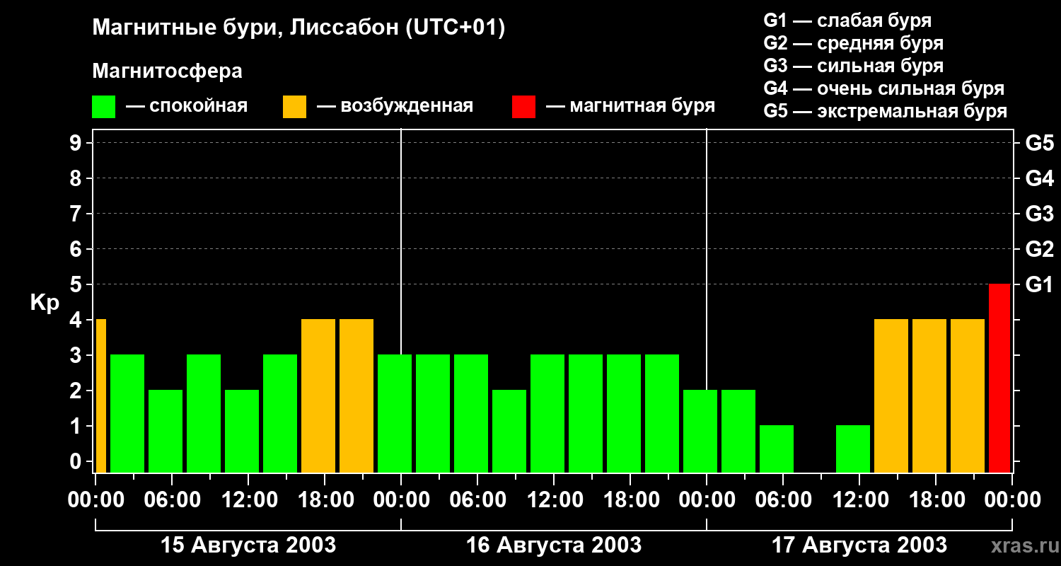 Магнитные бури в Лиссабоне — 17 августа 2003 года