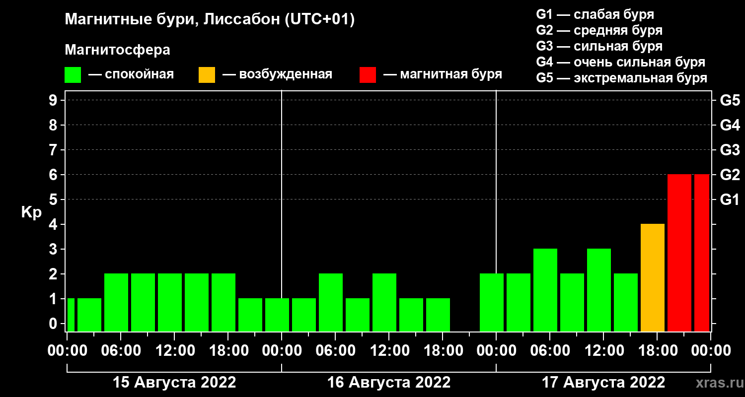 Магнитные бури в Лиссабоне — 17 августа 2022 года