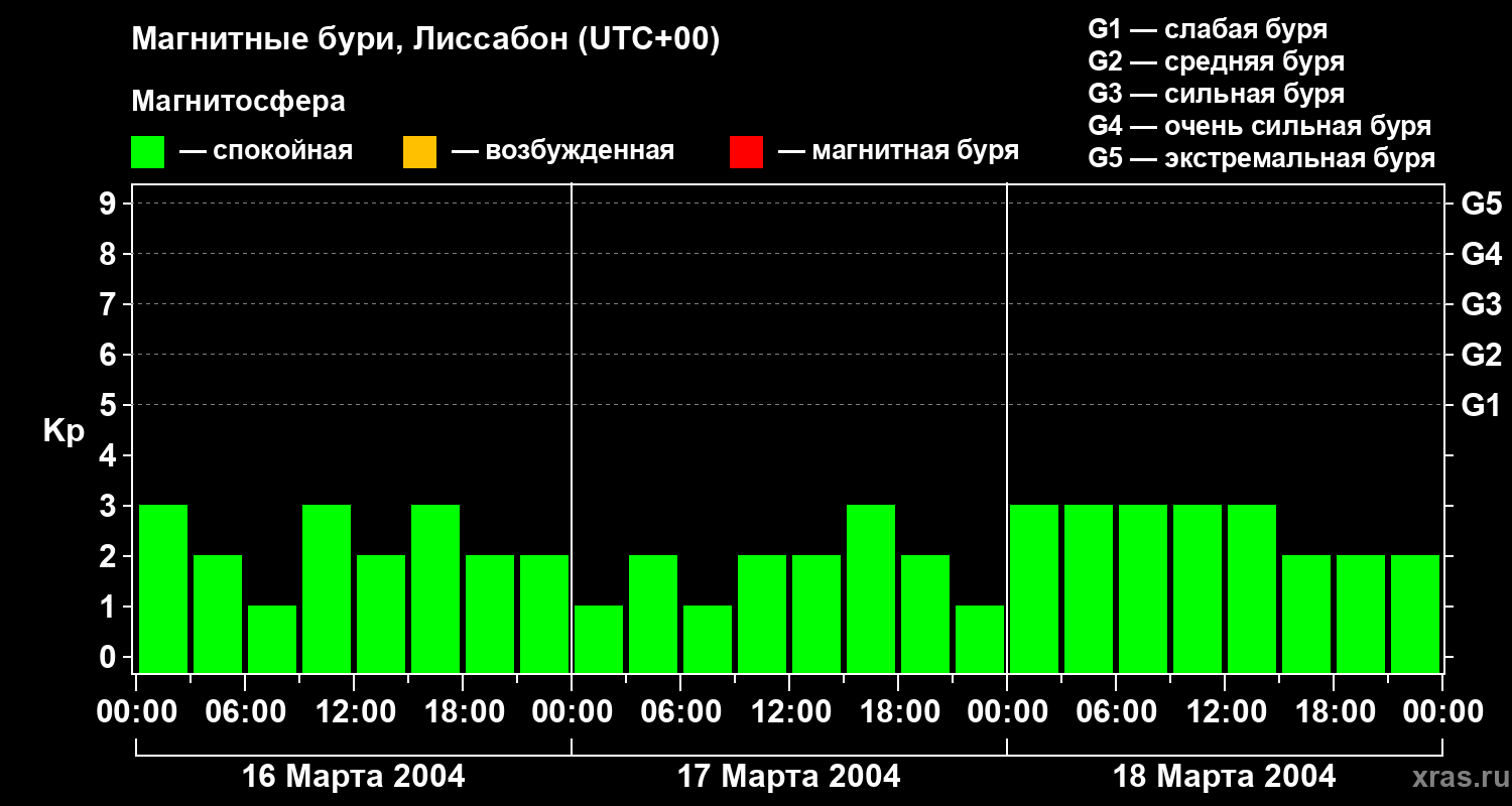 Магнитные бури в Лиссабоне — 18 марта 2004 года