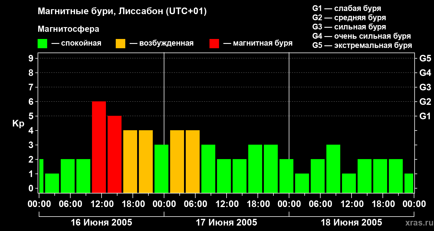 Магнитные бури в Лиссабоне — 18 июня 2005 года