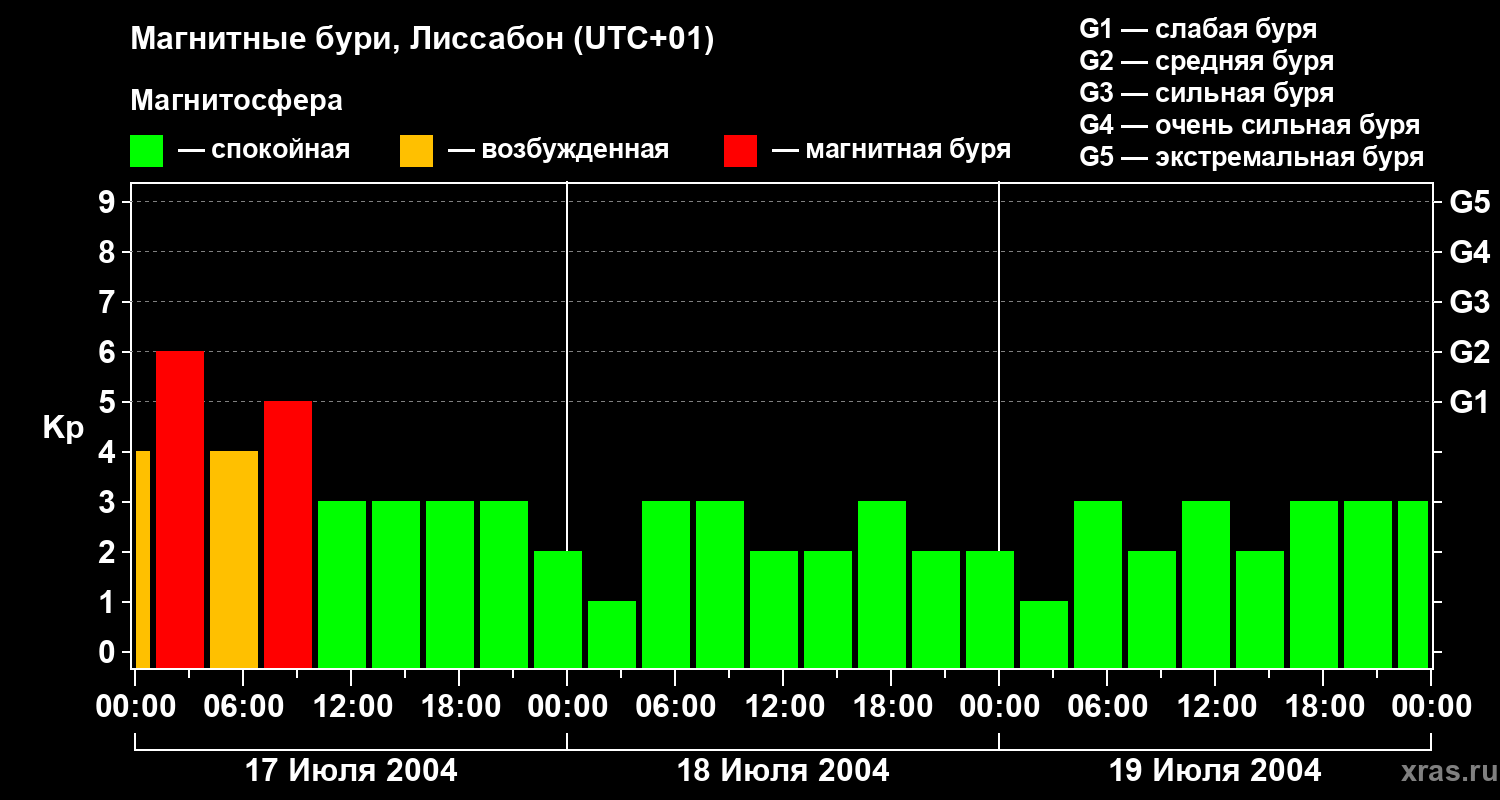 Магнитные бури в Лиссабоне — 19 июля 2004 года