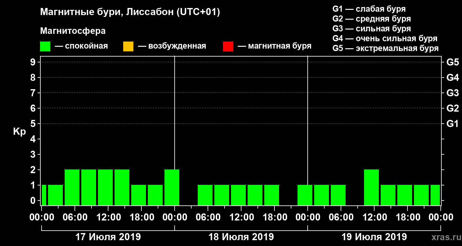 Магнитные бури в Лиссабоне — 19 июля 2019 года