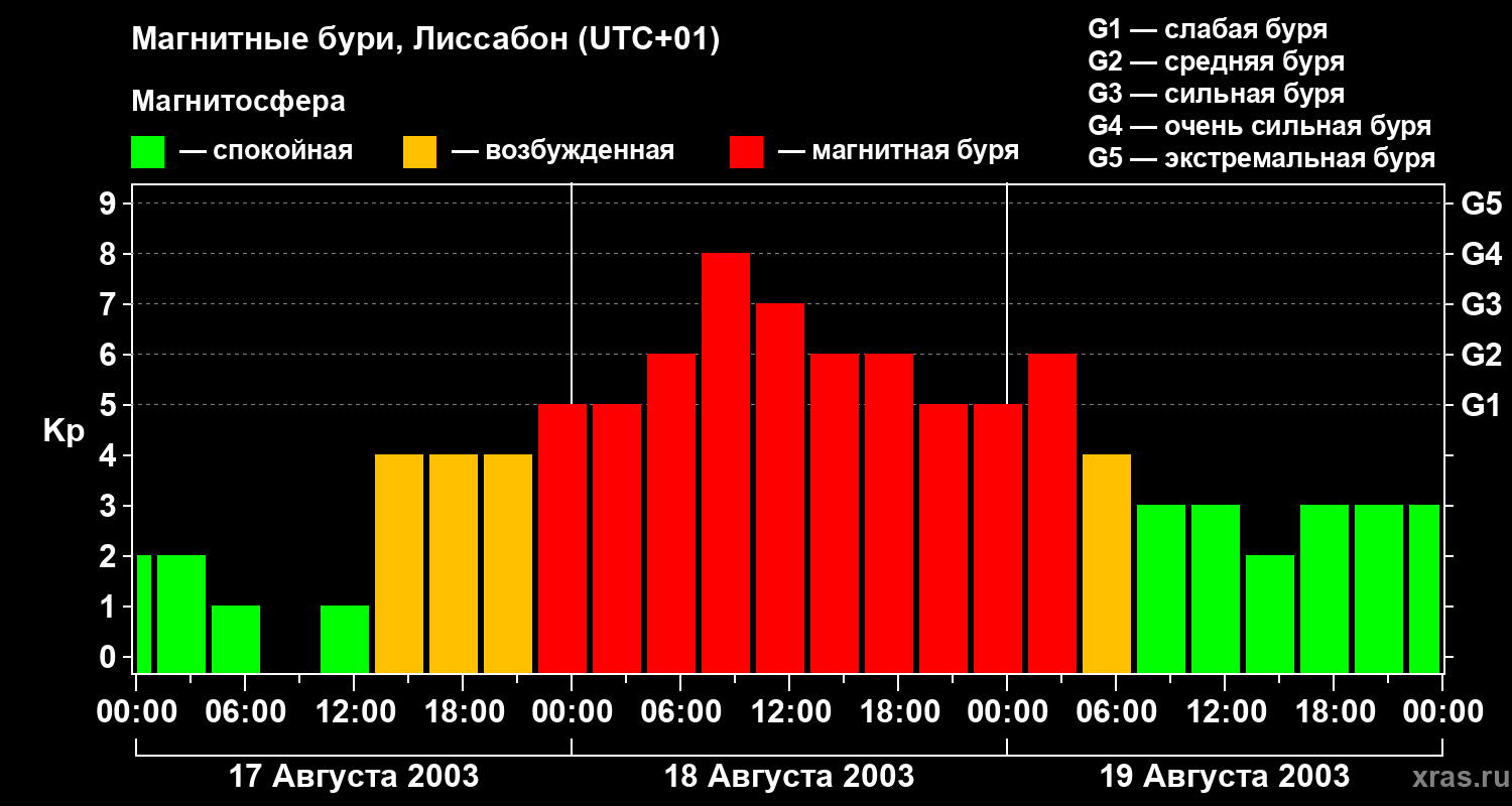 Магнитные бури в Лиссабоне — 19 августа 2003 года