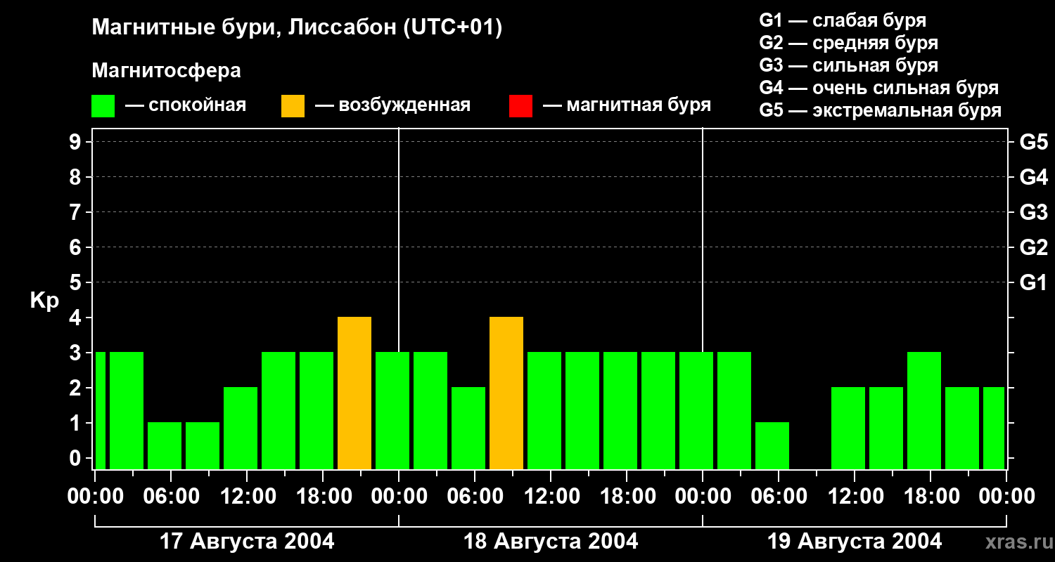 Магнитные бури в Лиссабоне — 19 августа 2004 года
