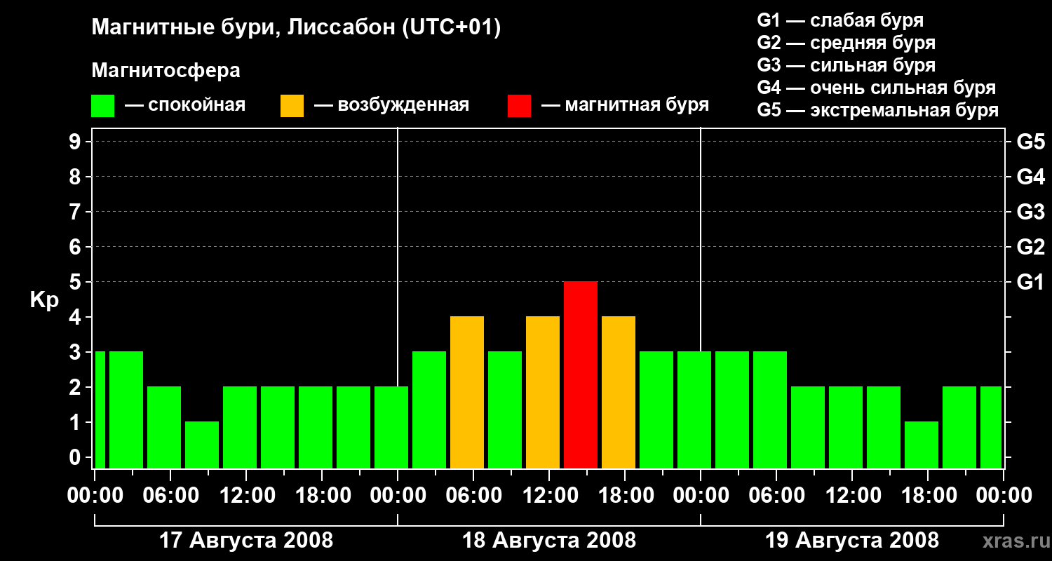 Магнитные бури в Лиссабоне — 19 августа 2008 года