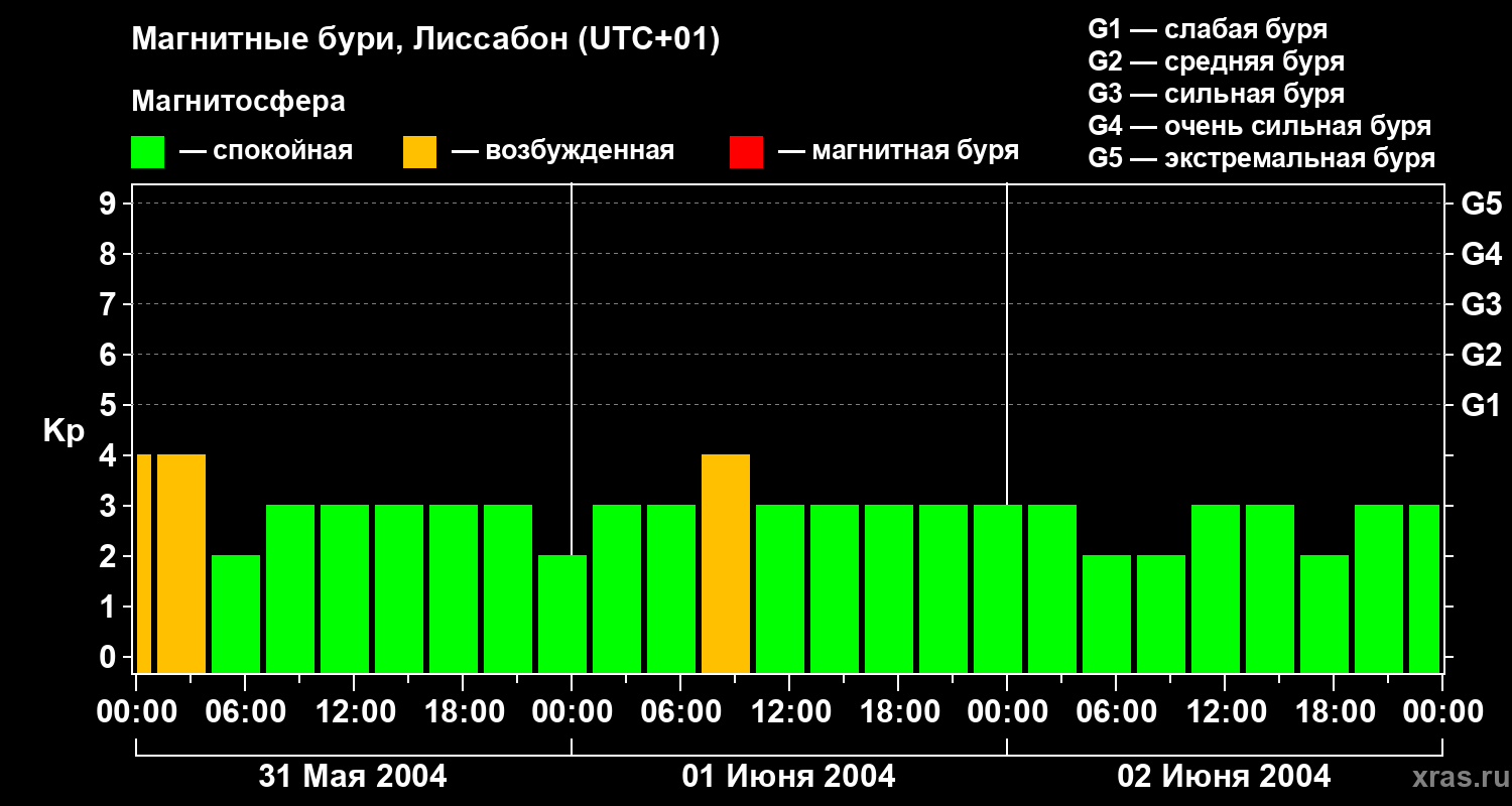 Магнитные бури в Лиссабоне — 2 июня 2004 года