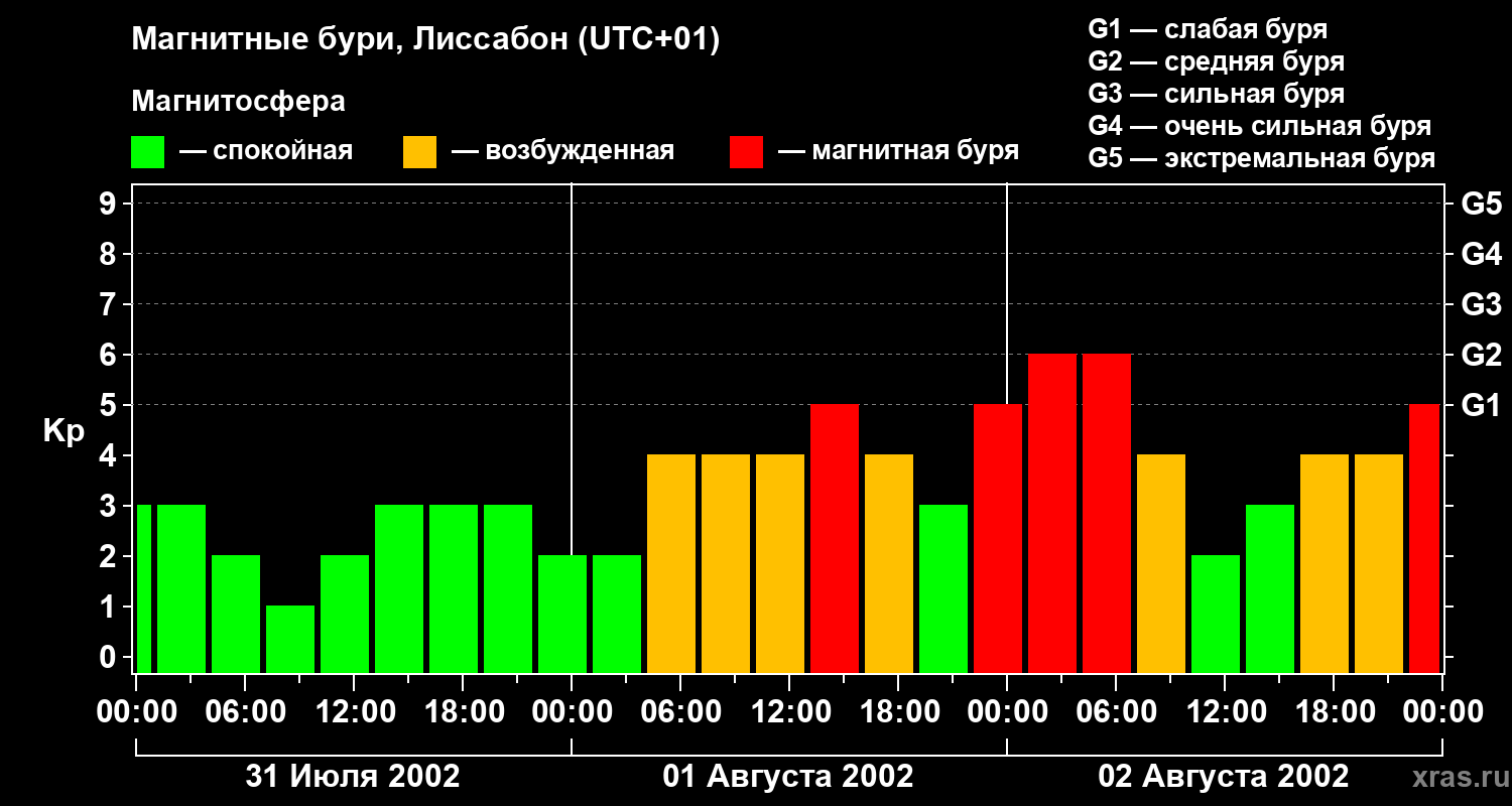 Магнитные бури в Лиссабоне — 2 августа 2002 года