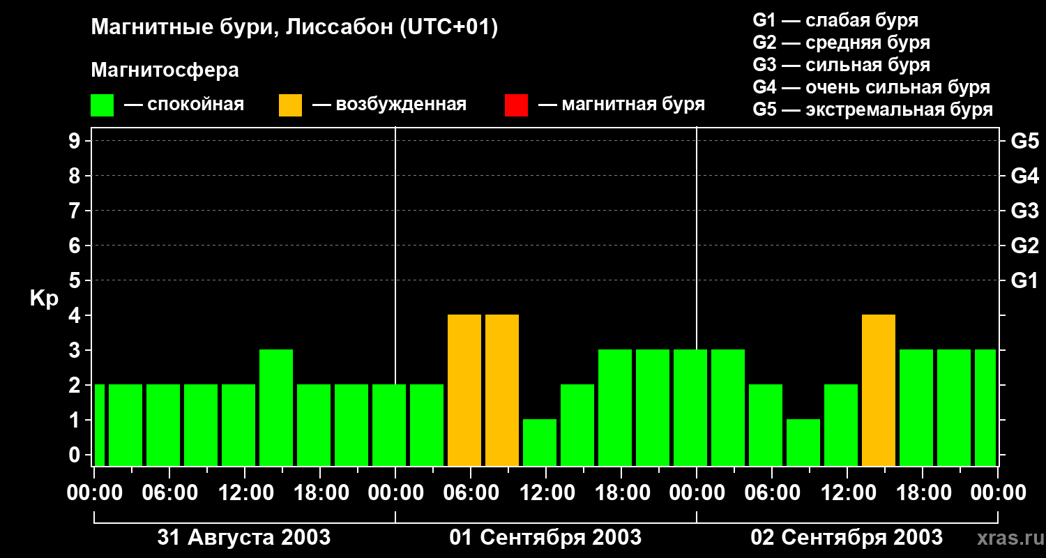 Магнитные бури в Лиссабоне — 2 сентября 2003 года
