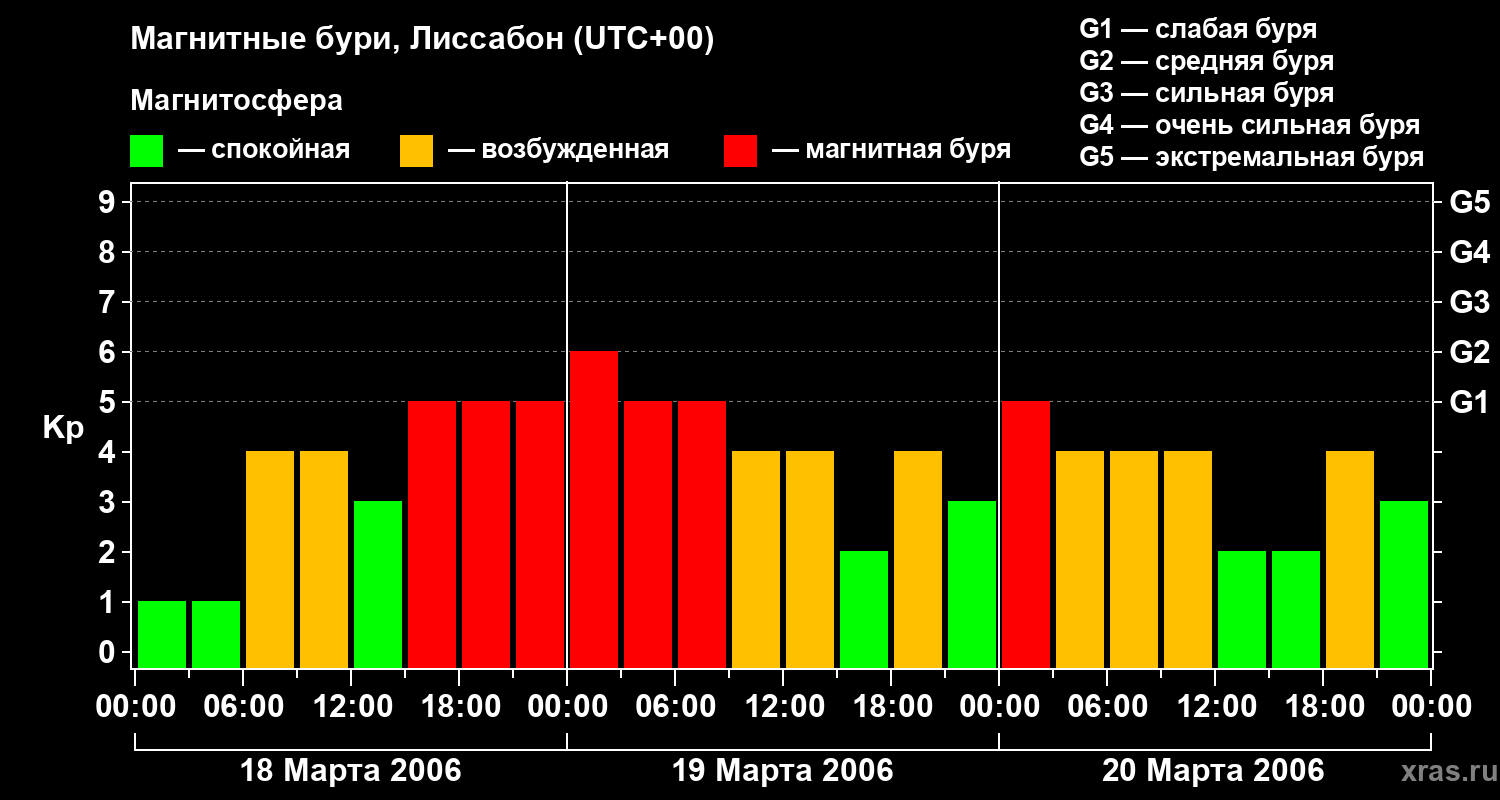 Магнитные бури в Лиссабоне — 20 марта 2006 года