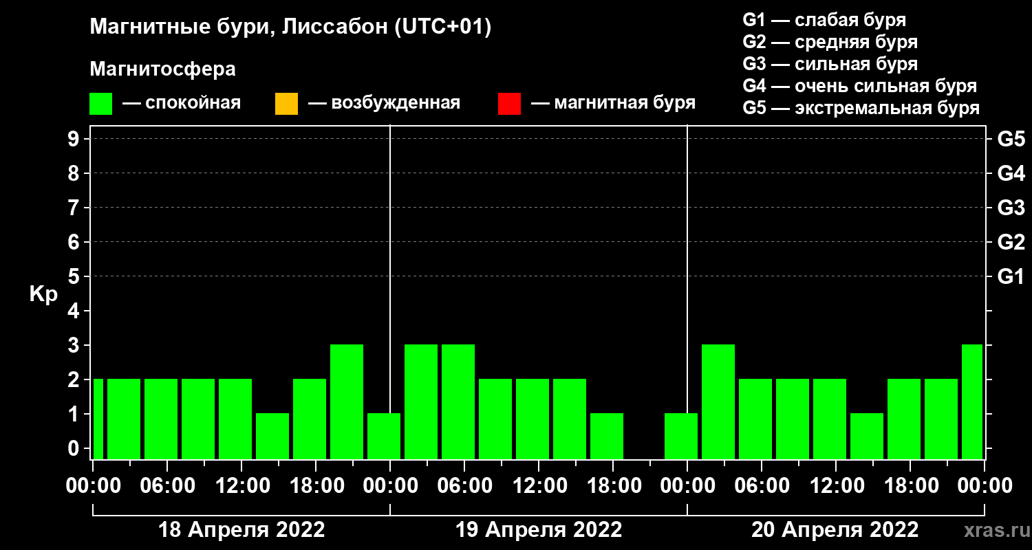 Магнитные бури в Лиссабоне — 20 апреля 2022 года