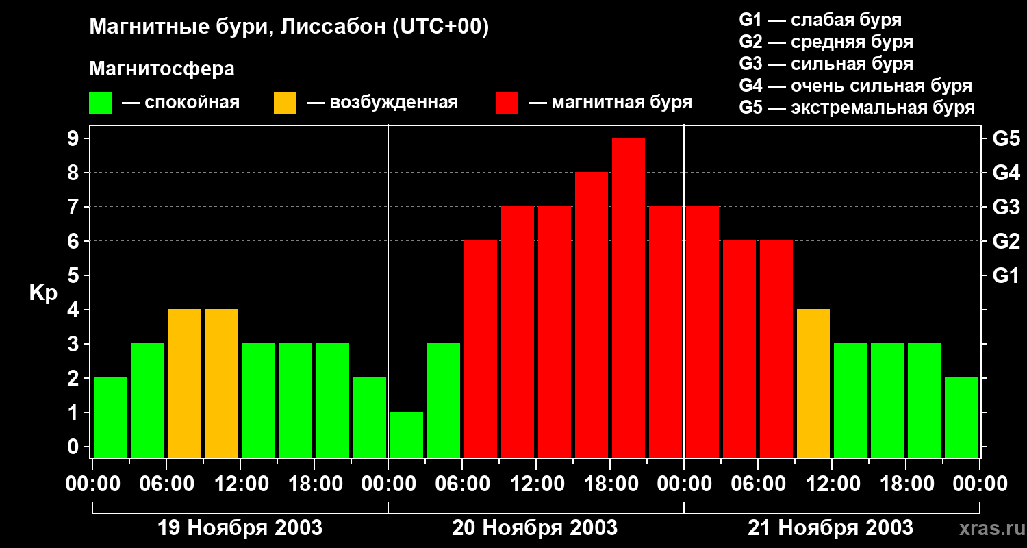 Магнитные бури в Лиссабоне — 21 ноября 2003 года