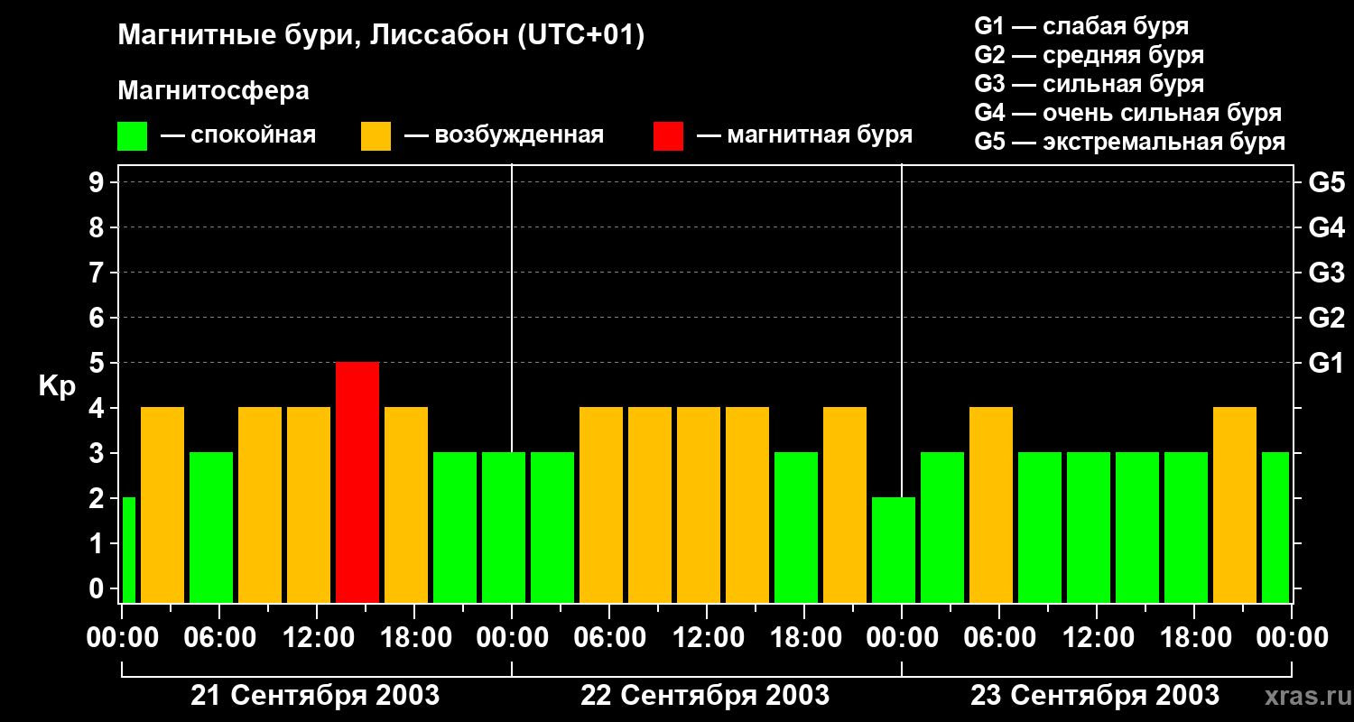 Магнитные бури в Лиссабоне — 23 сентября 2003 года