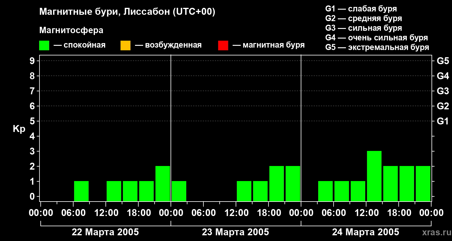 Магнитные бури в Лиссабоне — 24 марта 2005 года