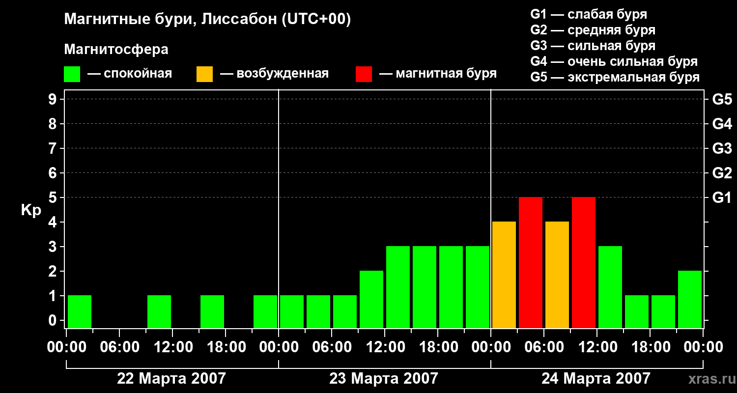 Магнитные бури в Лиссабоне — 24 марта 2007 года
