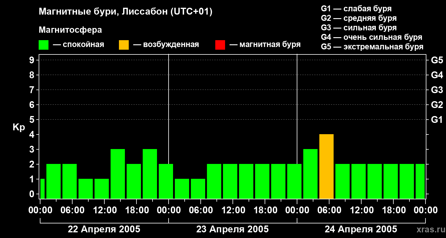 Магнитные бури в Лиссабоне — 24 апреля 2005 года