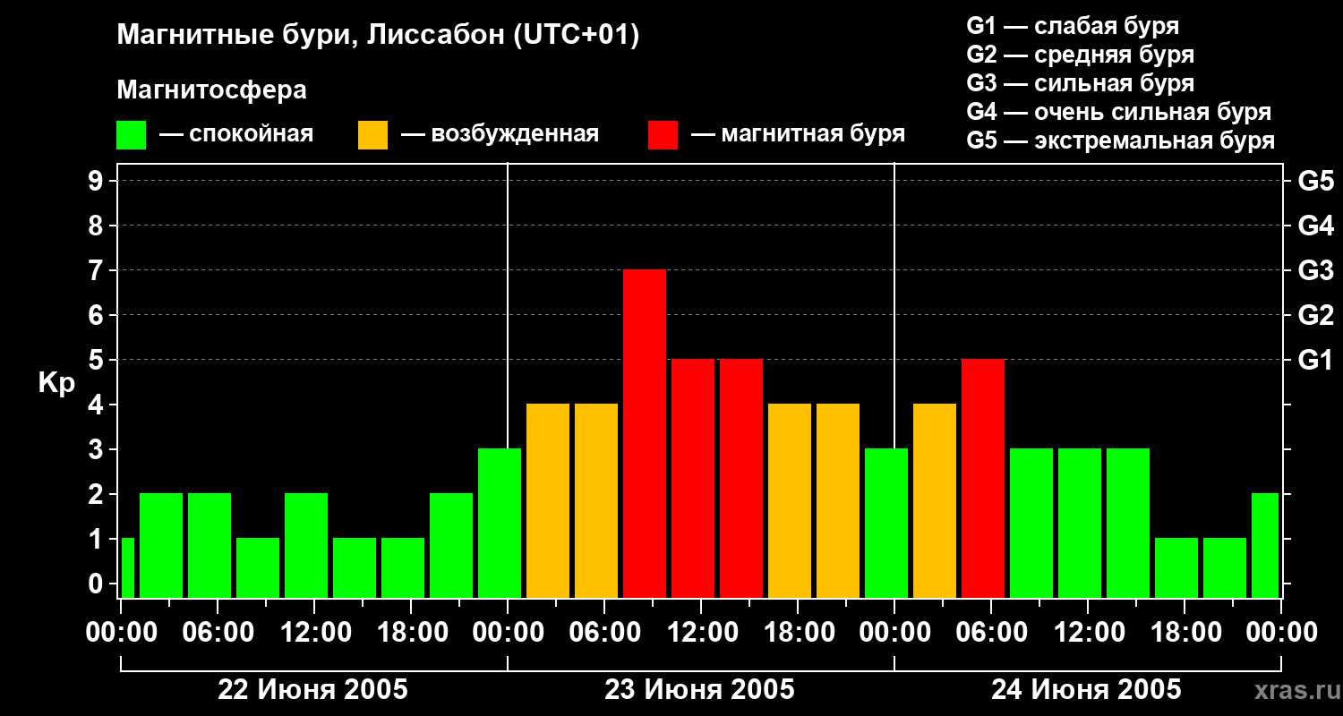 Магнитные бури в Лиссабоне — 24 июня 2005 года
