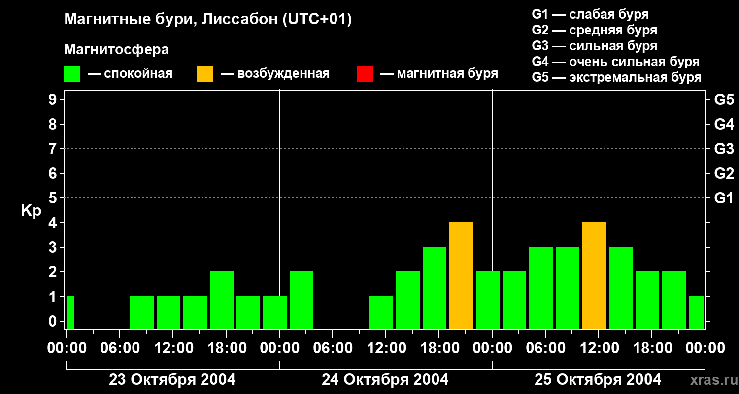Магнитные бури в Лиссабоне — 25 октября 2004 года