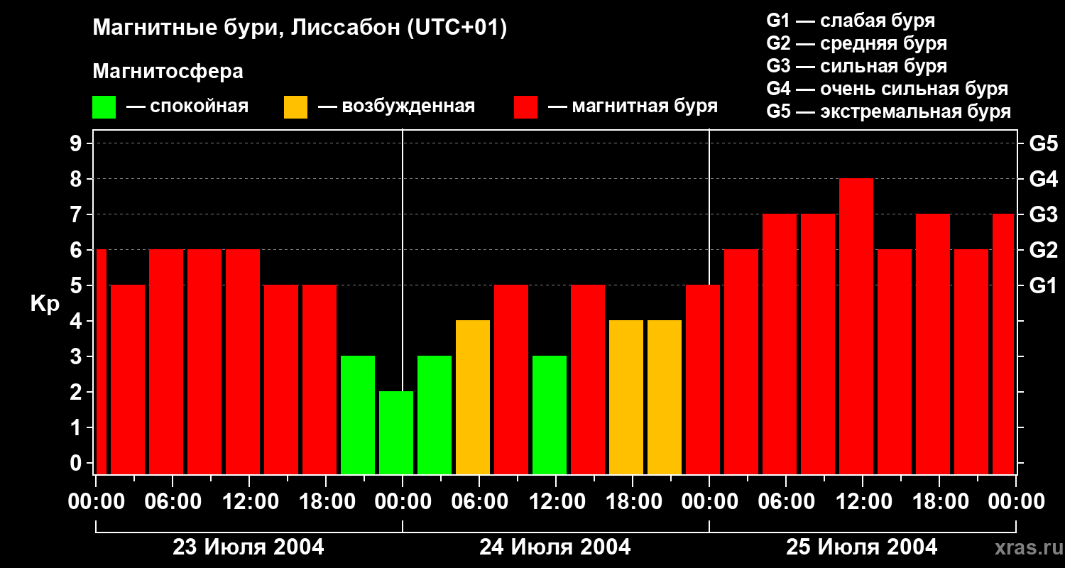 Магнитные бури в Лиссабоне — 25 июля 2004 года